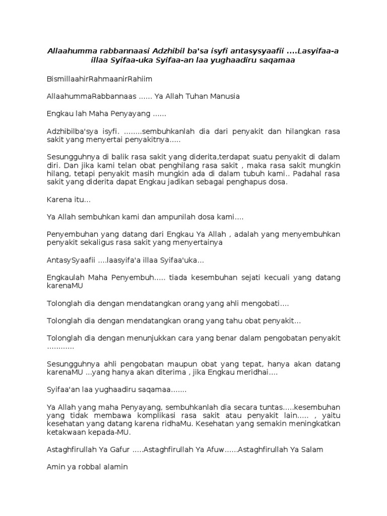 Rabbanasi Adzhibil Ba'sa : Azhibil Ba Sa Rabban Naas Washfi Antash Shaafee / Maybe you would like to learn more about one of these?. Check spelling or type a new query. We did not find results for: Maybe you would like to learn more about one of these?